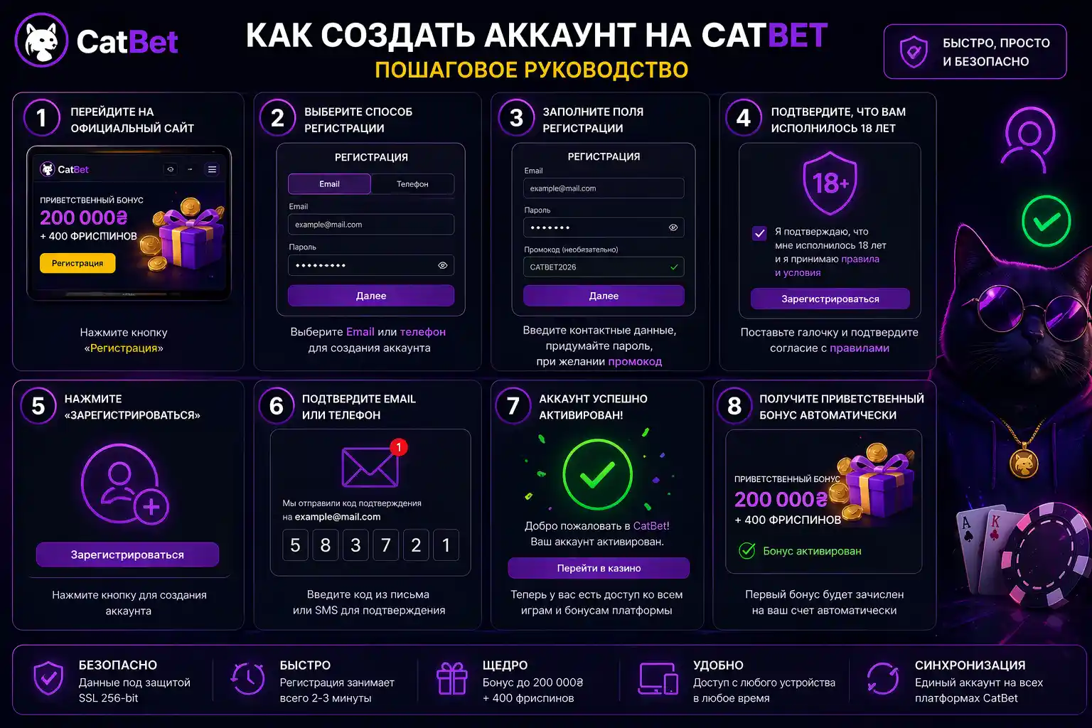 Данный материал предоставляет информацию о процессе входа и регистрации на платформе CatBet UA. Это не является рекомендацией к участию в игре. Азартные игры сопряжены с финансовыми рисками. Соблюдайте ответственное игровое поведение.